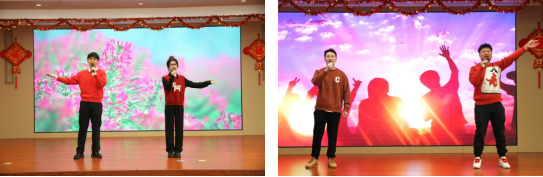 从《如愿》的深情吟唱到《奔跑》的昂扬节奏,从《拜新年》的欢快韵律到《珊瑚颂》的经典旋律,每一个音符都传递着海龙人对新年的美好期盼。《ZOO》的热舞释放青春活力,《送你一朵小红花》的温暖告白抚慰心灵,《滑稽双簧》的妙趣横生引发阵阵欢笑,《时光里的畅春园》则用走心的演绎勾起温暖回忆。《我们都是追梦人》更是将全场气氛推向高潮,唱出了所有海龙人共同的心声。