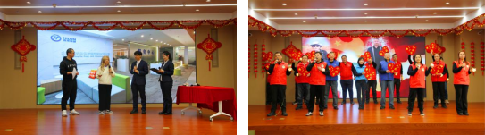 最为牵动人心的是抽奖环节,中奖者兴高采烈地从集团领导手中接过奖品,欢声笑语中洋溢着新春的喜悦与期待。
