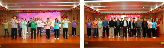 联欢会在《开门红》激昂欢腾的旋律中拉开帷幕。红绸舞动,如霞光铺展,映亮满堂笑脸;长龙盘跃,似海潮奔腾,满载奋进豪情;班子成员与员工携手共舞,瞬间将热烈氛围推向高潮。